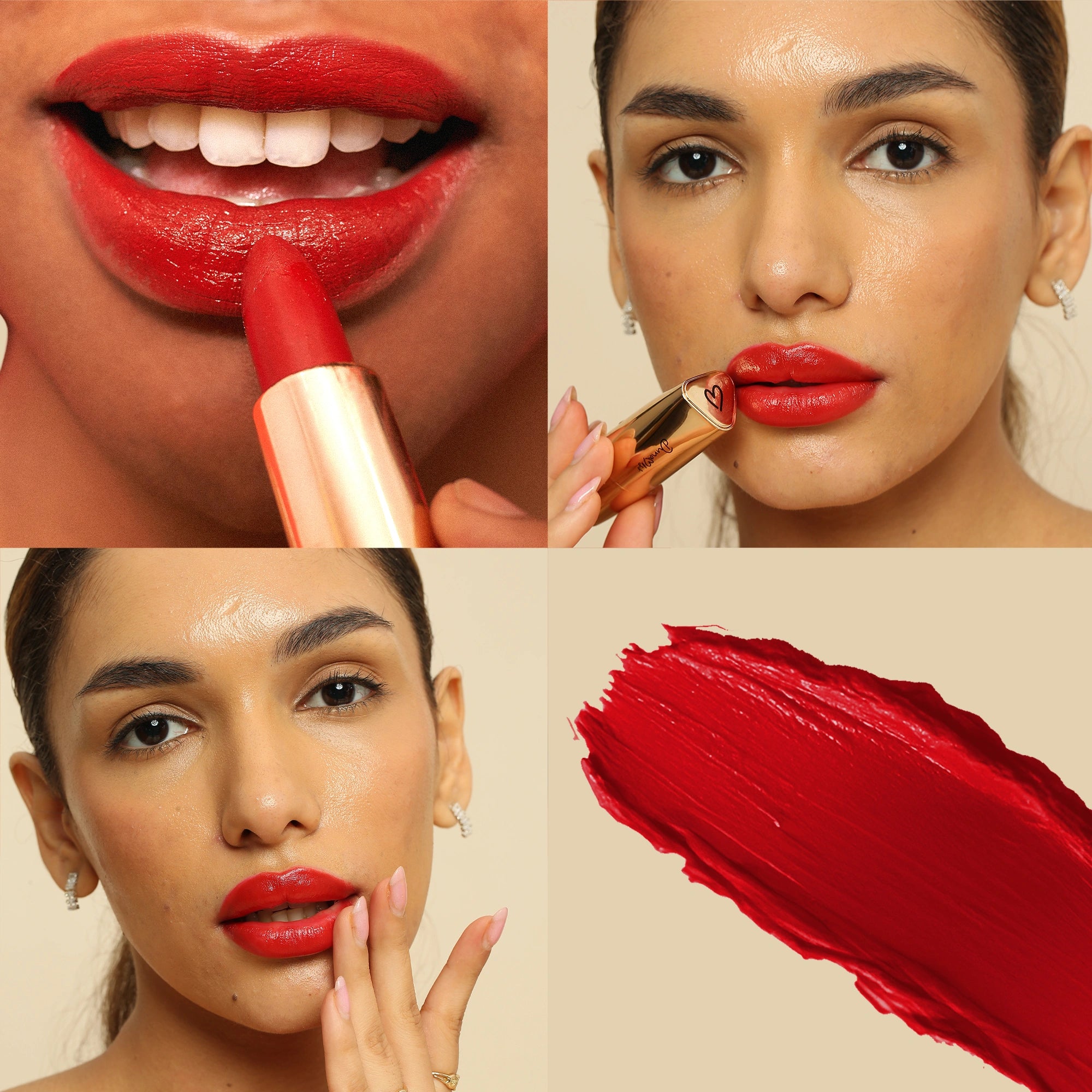 Radiant and Captivating – Shine bright with Dona, a red satin lipstick that adds a dazzling sheen to your lips. Its vibrant color is perfect for special occasions or date nights. Enriched with nourishing ingredients, it keeps your lips soft all day.