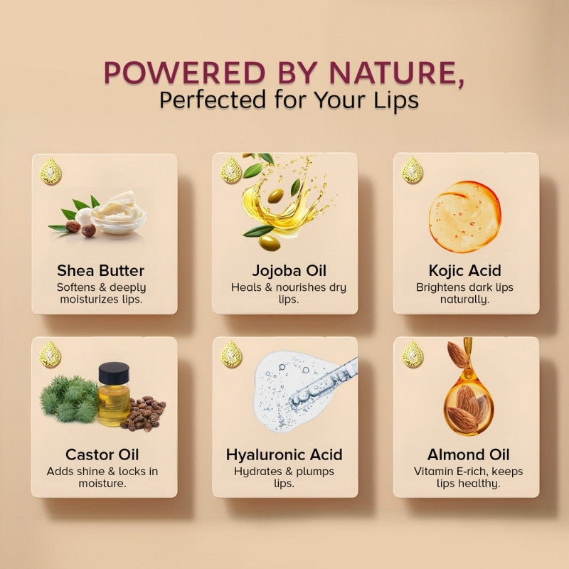 Hyaluronic Acid: Locks in moisture for smooth lips.