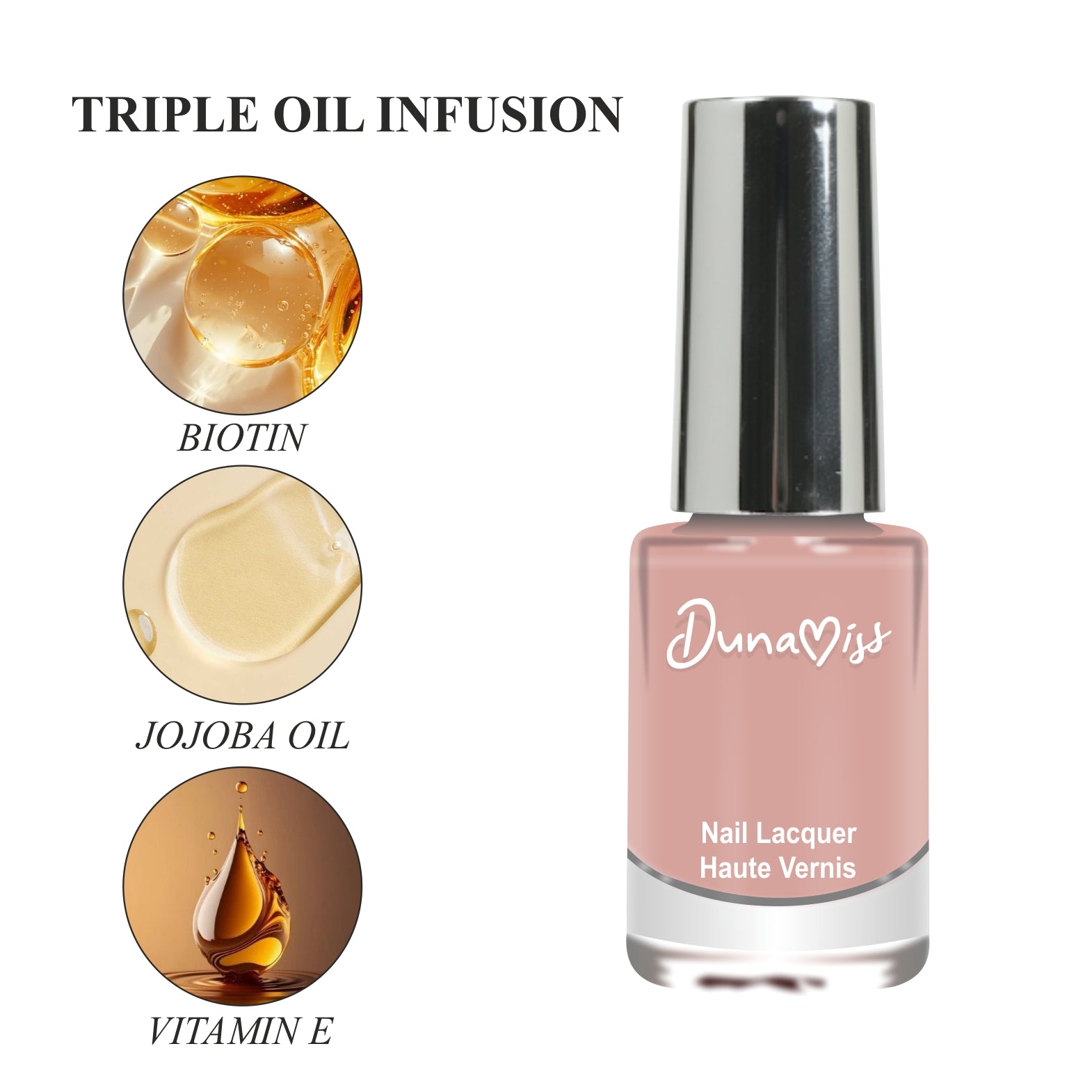 Experience the ultimate care for your nails with our Triple Infusion Formula, specially crafted to nourish, protect, and enhance natural beauty.